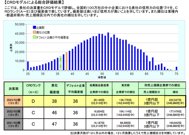 全国の中小企業における信用力の相対的な位置づけを偏差値で表示